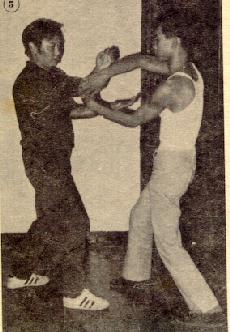 A picture in an old kungfu magazine showing two Wing Choon exponents practising "Chi Sao", or "Sticking Hands", a very effective mehod to prepare for free sparring.