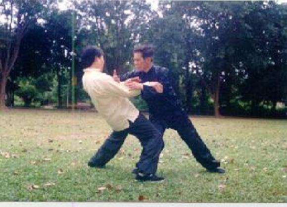 Taijiquan is an internal martial art. In the picture above Sifu Wong uses the pressing-technique, known as “Push Boat According to Current”, to fell an opponent.