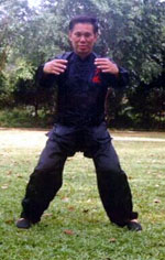 If you are ready to surpass limitations imposed by your style and use a sideway Bow-Arrow Stance instead of a Four-six Stance while striking out your “phew chi” (finger thrust), you would have certain extra advantages. Using a sideway Bow-Arrow Stance, you will be nearer in your attack on your opponent, yet further away in your defence from his attack! Moreover, you can choose to move your body weight forward or move your body weight backward for the subsequent frontal thrust kick. If you realize that, in this case for example, even when you use the same techniques, but if you just change a stance, you can have three extra advantages, you may appreciate why stances are so important in kungfu.