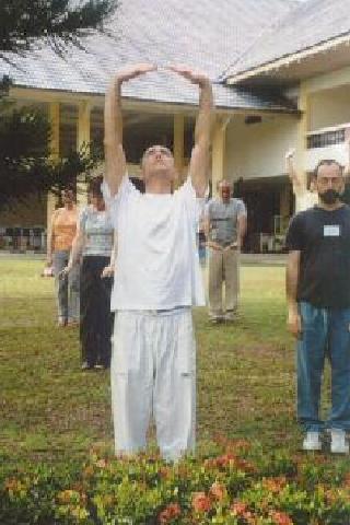 Many people may not understand that breathing in chi kung is quite different from breathing in conventional Western exercise. In conventional Western exercise, diaphragmatic breathing may be used to increase the volume of air taken in. But this is incorrect in chi kung. In chi kung, breathing is not just taking in and giving out air, it is taking in good energy and giving our bad energy.