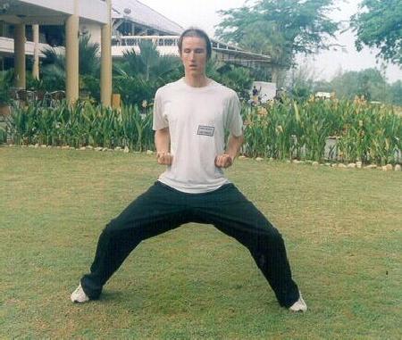 Stance training develops internal force and mental clarity. Here Sifu Michael Durkin of Shaolin Wahnam England demonstrates the Horse-Riding Stance