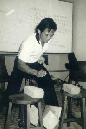 Sifu Cheng Chang Shou, a senior disciple of Sifu Wong, employing Cosmos Palm to break a piece of marble with an apparently gentle tap