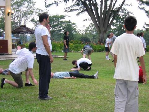 when I teach students in Shaolin Wahnam, consciously or unconsciously I include elements from Shaolin Cosmos Qigong into my teaching. It is like using the forms of Eighteen Lohan Hands and Sinew Metamorphosis as well as stance training and combat sequences to teach the essence of Shaolin Cosmos Qigong. It brings these arts to an exceedingly high level - sometimes at a level that even alarms me.