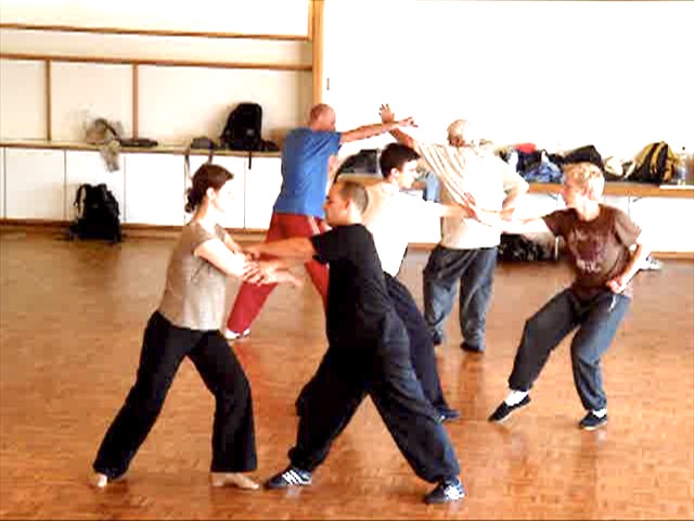 Participants at the regional Shaolin Kungfu Course in Switzerland in August 2006 practicing free sparring. The woman student in the foreground was a fresh beginner. She had no martial art experience before, and started learning Shaolin Kungfu just three days before this video was taken. Yet she could apply the kungfu patterns she had learnt for sparring. She was an inspiration for all of us.