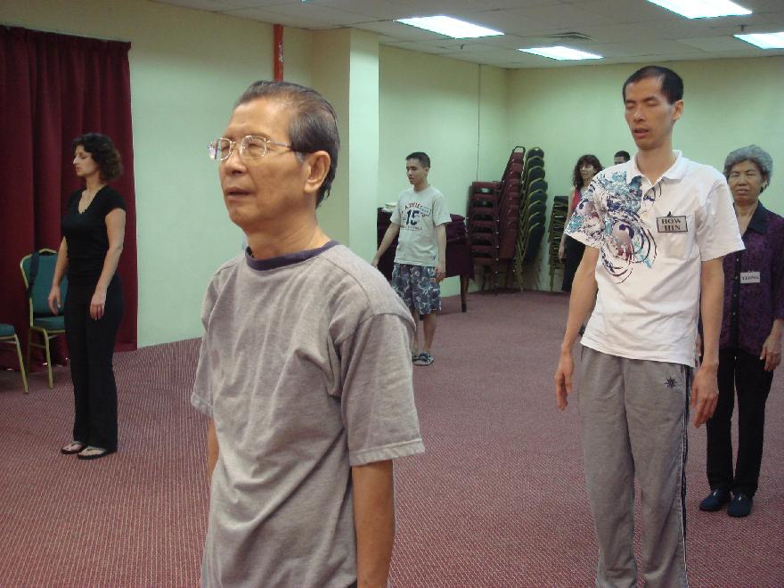 Other people may not believe it is possible, but participants at the course successfully learn how to direct chi to their various organs to massage them. The photograph above shows them applying this newly learnt skill.