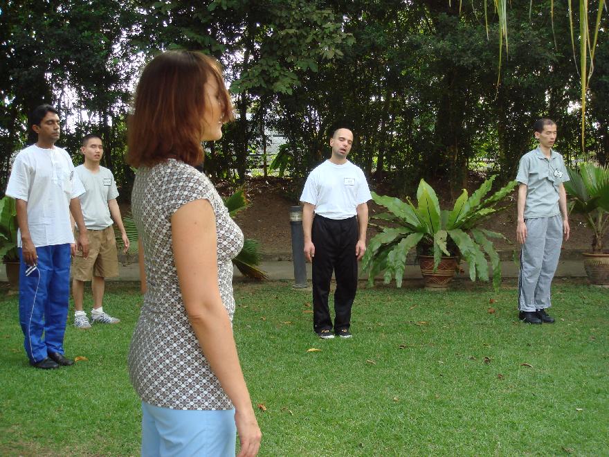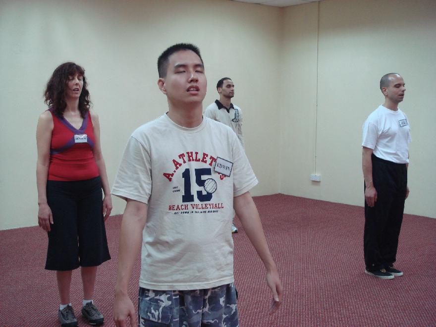 Deviani, Edwin, Mahmood and Joe experiencing spiritual joy during Standing Meditation at the Intensive Chi Kung Course of Janauary 2008