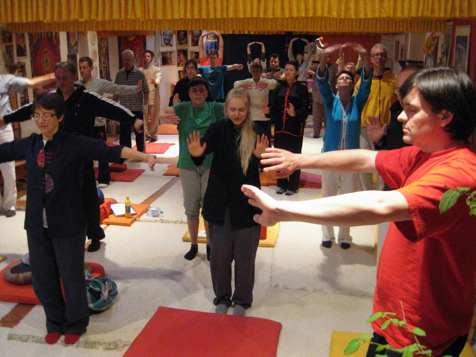 "Pushing Mountain" is excellent for developing internal force. It is indeed amazing that even master spending many years chasing after internal force, end up disappointed, but our relative beginners can feel internal force after just one session of Pushing Mountain. It is also a choice exercise to direct chi flowing at the meridian level in Bone Marrow Cleansing.
