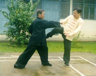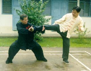 This will also give you an idea of the different standard between Chinese martial arts and the other arts. A Karate punch or a Taekwondo kick may be destructive when connected on an untrained person, but to a Chinese master with Golden Bell, Iron Shirt or other forms of internal force, the punch or kick actually does not worry him much. But just one strike of his Iron Palm, Cosmos Palm or an attack packed by tremendous internal force may kill or maim. This is one reason why freely kicking and punching each other in sparring which is normal in many other martial arts, is untinkable in kungfu.