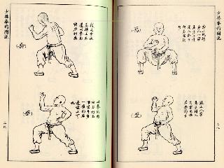 A page from an old kungfu classic showing the Shaolin Five Animals