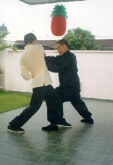 The responder moves his left leg forward to counter-attack with “Black Tiger Steals Heart”. If he maintains the initiative, he may continue with any of the Sequences 1 to 12.