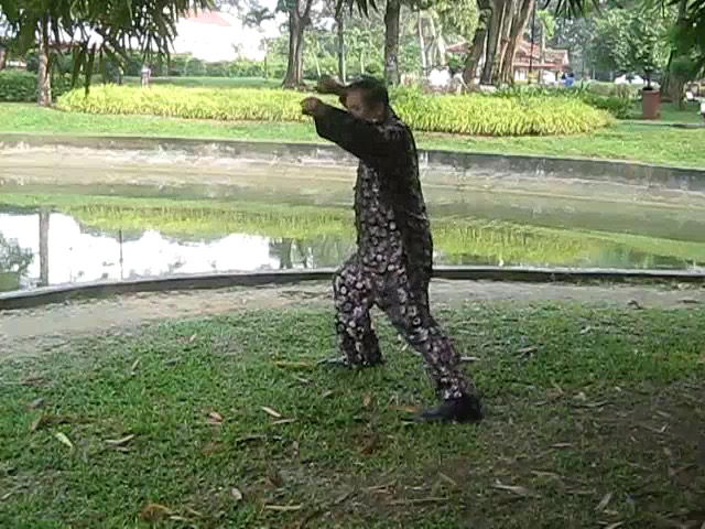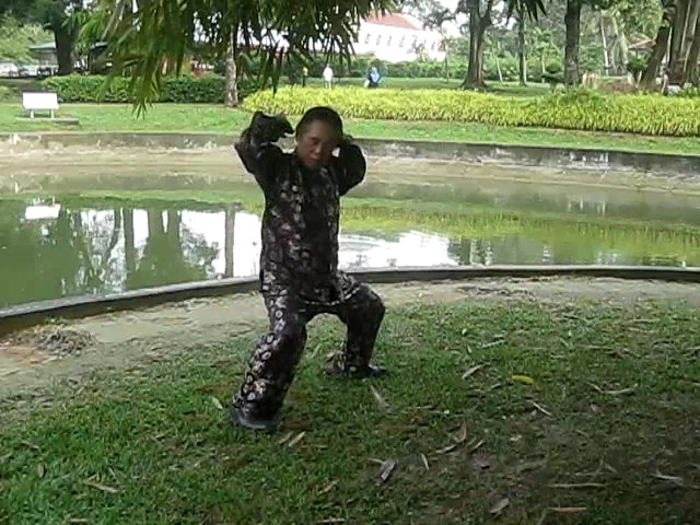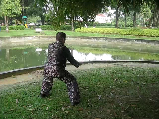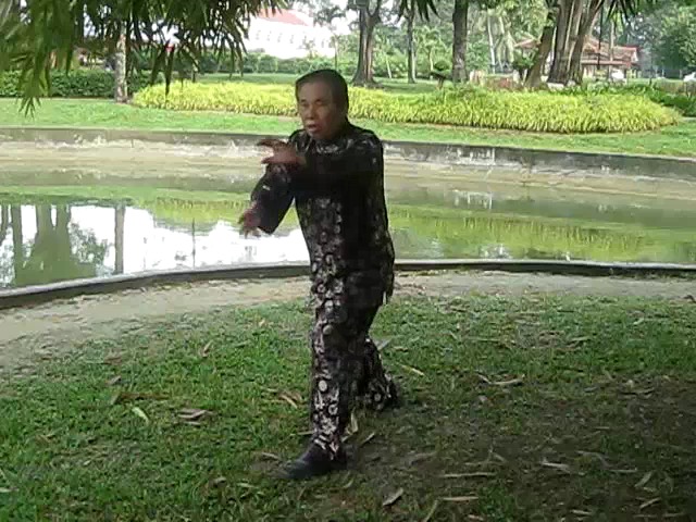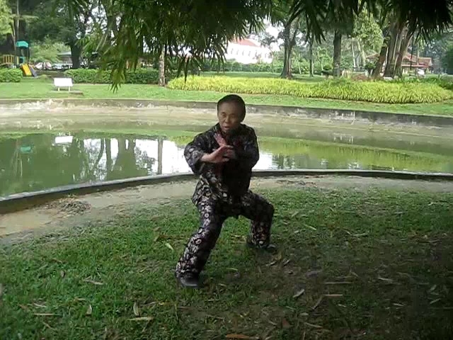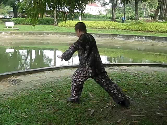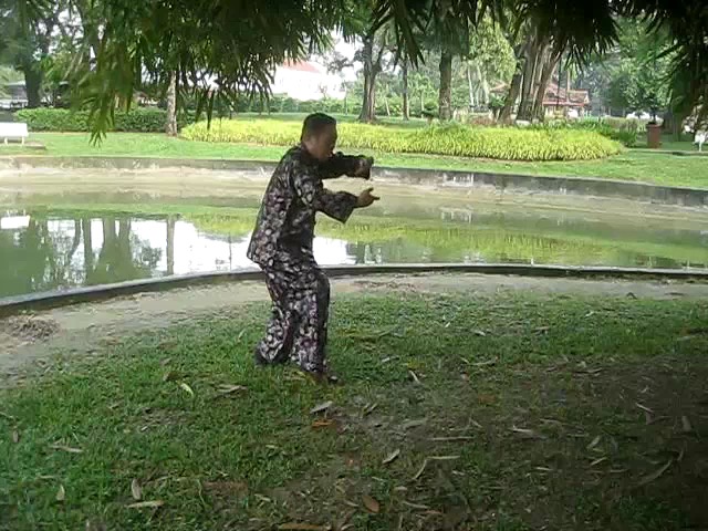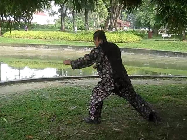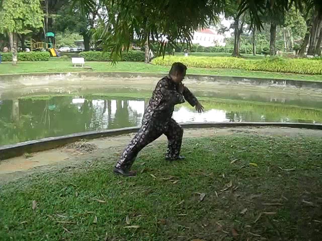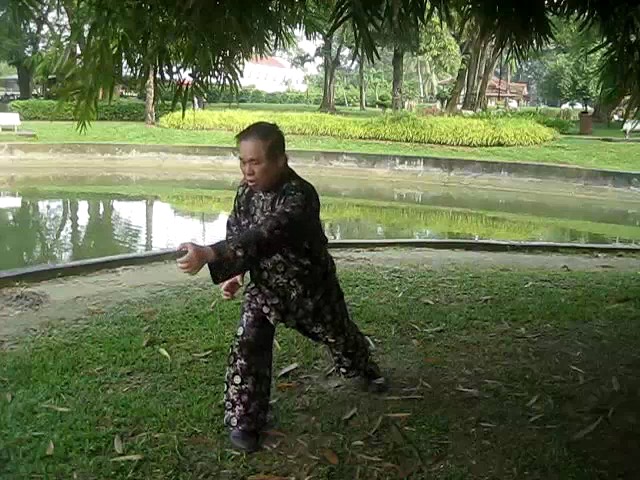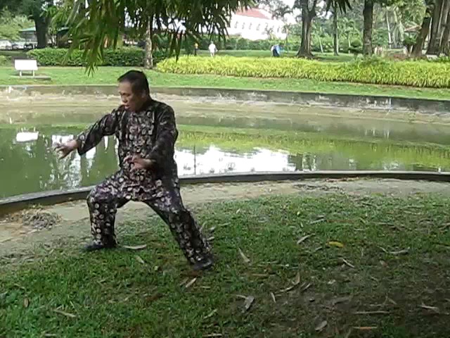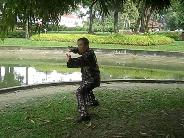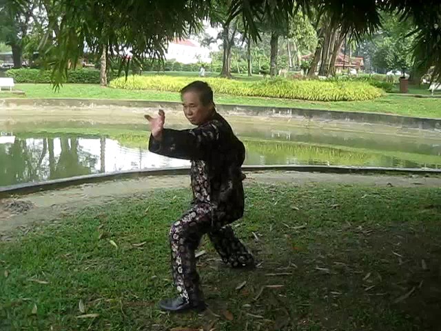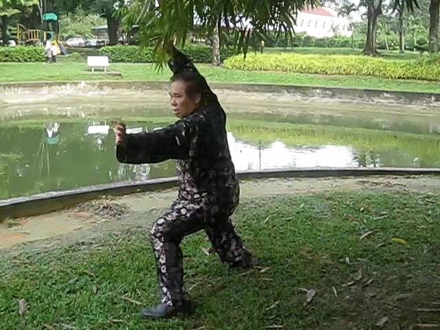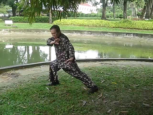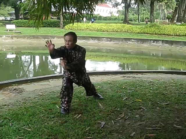 Grandmaster Wong demonstrating a pattern called "Hungry Tiger Leans against Fence"