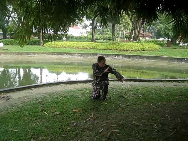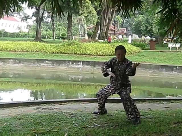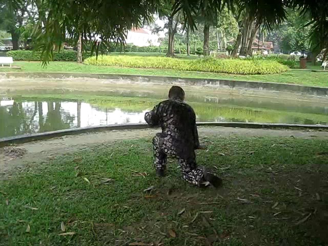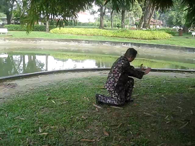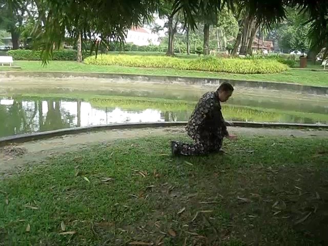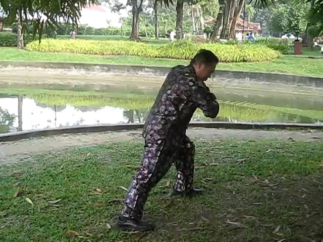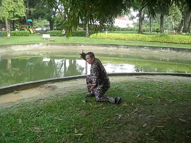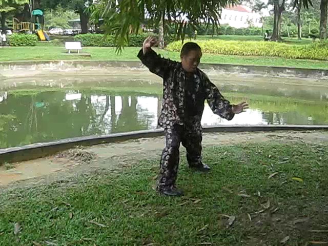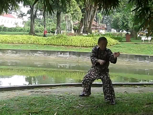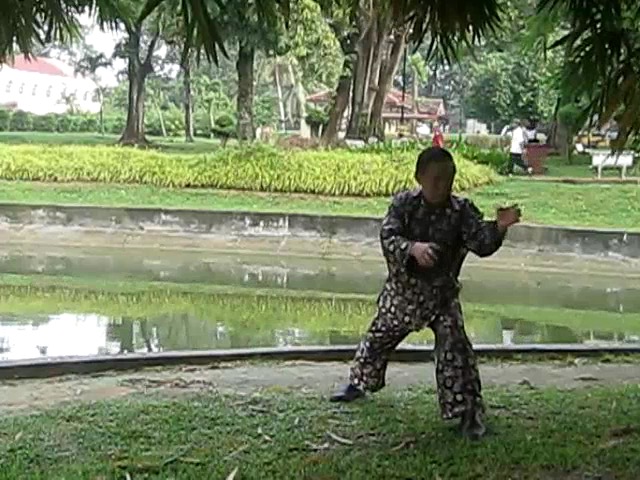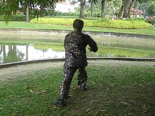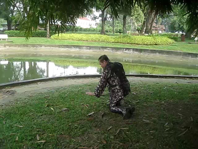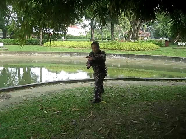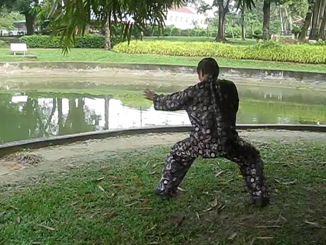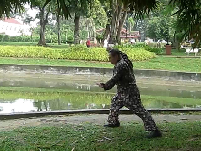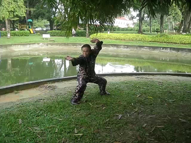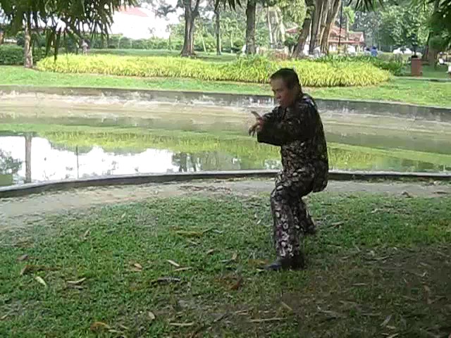 Grandmaster Wong demonstrating a pattern called "Hungry Tiger Leans against Fence"