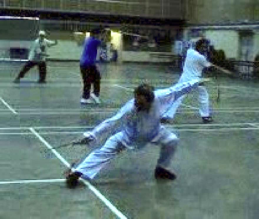 The Shaolin Traveling Dragon Sword is purposefully performed slowly with pauses in between patterns so that students can see the movements more easily. When you are familiar with the movements, they should be performed fast and smoothly as sequences rather than as individual patterns.