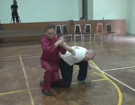 In the video clip showing “Double Tigers Subdue Dragon”, where only one chin-na technique is shown in this video, one might free his leg if it was caught by an opponent.