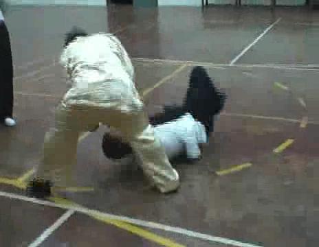 Application of the double tiger claws in the pattern “Hungry Tiger Catches Goat” is one of Grandmaster Wong's specialties. The encounters between him and Dr Damian were free and spontaneous, and showed some interesting combat principles. The applications of this “Hungry Tiger” chin-na technique against the four categories of attack were formalized in the combat sequence demonstrated.
