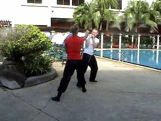 Having learnt and practiced some effective tactics and technique against Boxers, the course participants at the Intensive Shaolin Kungfu Course of October 2007 put them into application. The video clips here capture some of the actions. The sparring is spontaneous and free.