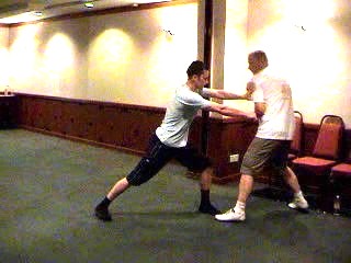 Some uninitiated observers may criticize the participants here for their lack of aggression or brutality. Being used to hurting one another in free sparring, they may wonder whether the sparring depicted here is effective. Instead of being annoyed, we should feel complimented. Being aggressive or brutal has never been our objective. Indeed, their criticism confirms for us that we are able to attain what internal masters in the past did, i.e. an internal martial artist can be gentle and elegant, yet powerful and effective — in combat as well as in daily life.