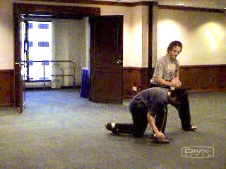 Course participants practice the techniques against elbow attacks from Muay Thai fighters.