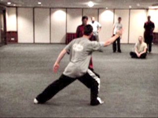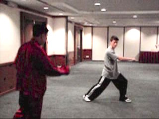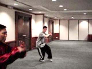 Here Grandmaster Wong explains two finer points concerning the outward form of the patterns “Fierce Tiger Descends Mountain” and “Golden Leopard Watches Fire”. Do you know what they are. If you watch the student's performance before and after Grandmaster Wong's explanation, you may find out. The finer points not only enhance combat but also enhance health. Do you know why?