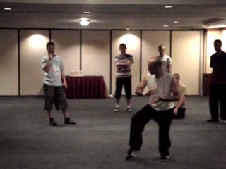 It is a Shaolin Kungfu set, and is different from sets in Pakua Kungfu or Baguazhang. There are, nevertheless, similarities, like the use of the palms and flowing, powerful movements like a Dragon's.
