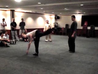 Now Nick rolls to the other side. It is obvious from the video that this roll is smoother. It is also easier for Nick to execute a tricky kick as he rolls. Small points like these make a difference in advanced level combat.