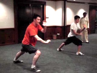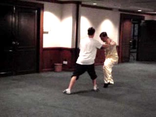 The next two patterns are “Crane Stands Amongst Cockerel” and “Dragon's Chi Spread Across Stream”. The Dragon pattern is excellent for manifesting internal force. But it also has useful applications. Grandmaster Wong asks the participants to suggest some of the applications.