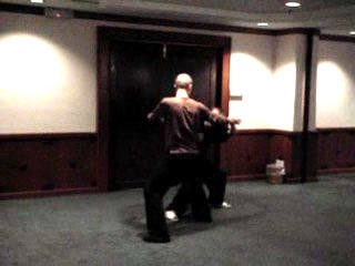 A student suggests that the pattern “Dragon Manifests Marvelous Majesty” can be used to counter an opponent gripping your neck or your arm. Grandmaster Wong points out some weaknesses of this counter. In such situations, “Taming Tiger with String of Beads” would be a better choice.