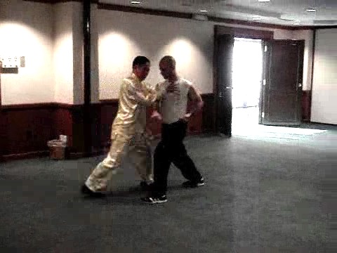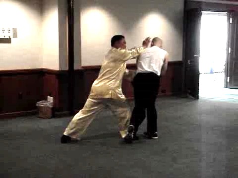 Grandmaster Wong explains the finer point in the combat application of the pattern “Thousand Tons Towards the Ground”. With these finer points, the exponent not only prevents himself from possible counter-attacks, but also breaks the opponent's elbow or arm besides striking him.