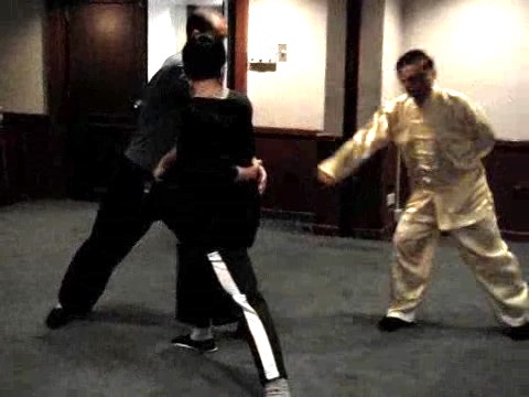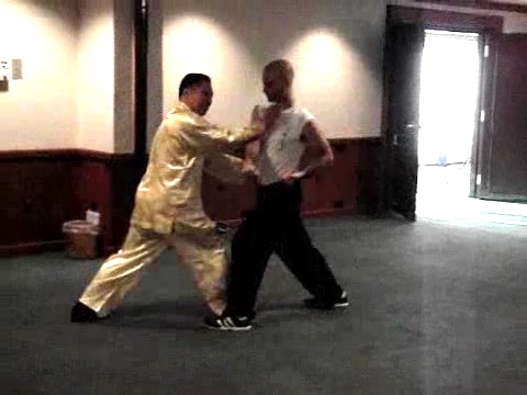 Another interesting pattern from the Tiger-Crane Set is “Thousand Tons Towards the Ground”. Why is one hand held behind the back? Zhang Wuji, who asks this question, shows the answer in its combat application.