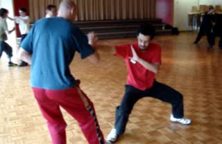 Considering that most kungfu practitioners today cannot use their kungfu patterns to free spar, it is understandable that most people would find it hard to believe. Some may think that once again we in Shaolin Wahnam are making outlandish claims. But it is true, and the video clips below show how these participants, ranging from beginners to advanced practitioners, free sparred at the Switzerland Shaolin Kungfu Regional Kungfu Course taught by Grandmaster Wong in August 2006. Sifu Andrew Barnett translated the course from English into German.
