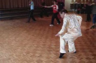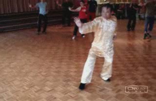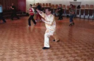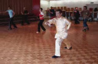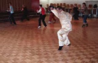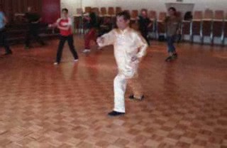Grandmaster Wong leading a class in Switzerland in 2006 to perform Single Tiger Emerges from Cave