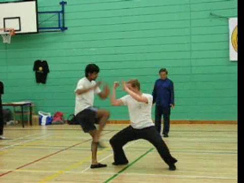 Course participants review Combat Sequences 1, 2 and 3. It is to their credit that despite just having learnt the sequences which contain many sophisticated combat applications, they can perform the sequences quite well. Many people may wonder how we can effectively use these sequences, which are pre-arranged in routine, in free sparring and real fighting where attacks occur at random. Of course we can, if we follow a systematic combat training programme.