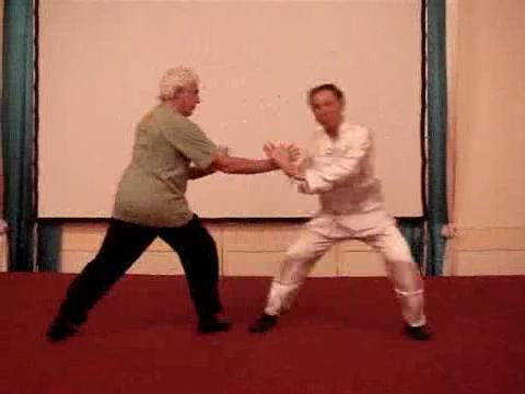 Would you like to be behind your opponent in combat? Obviously you can remarkably inrease your chance of beating him if you can do so. You can learn this skill here. It is important to cover yourself against possible surprised attacks while you move to the back of your opponent. You also learn how to neutralize if your opponent succeeds in getting to you back. How participants of other schools may perform their Pushing Hands is also demonstrated.