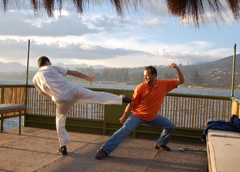 Sifu Rama and Sifu Jose Antonio enjoying some Taijiquan sparring on a river-boat